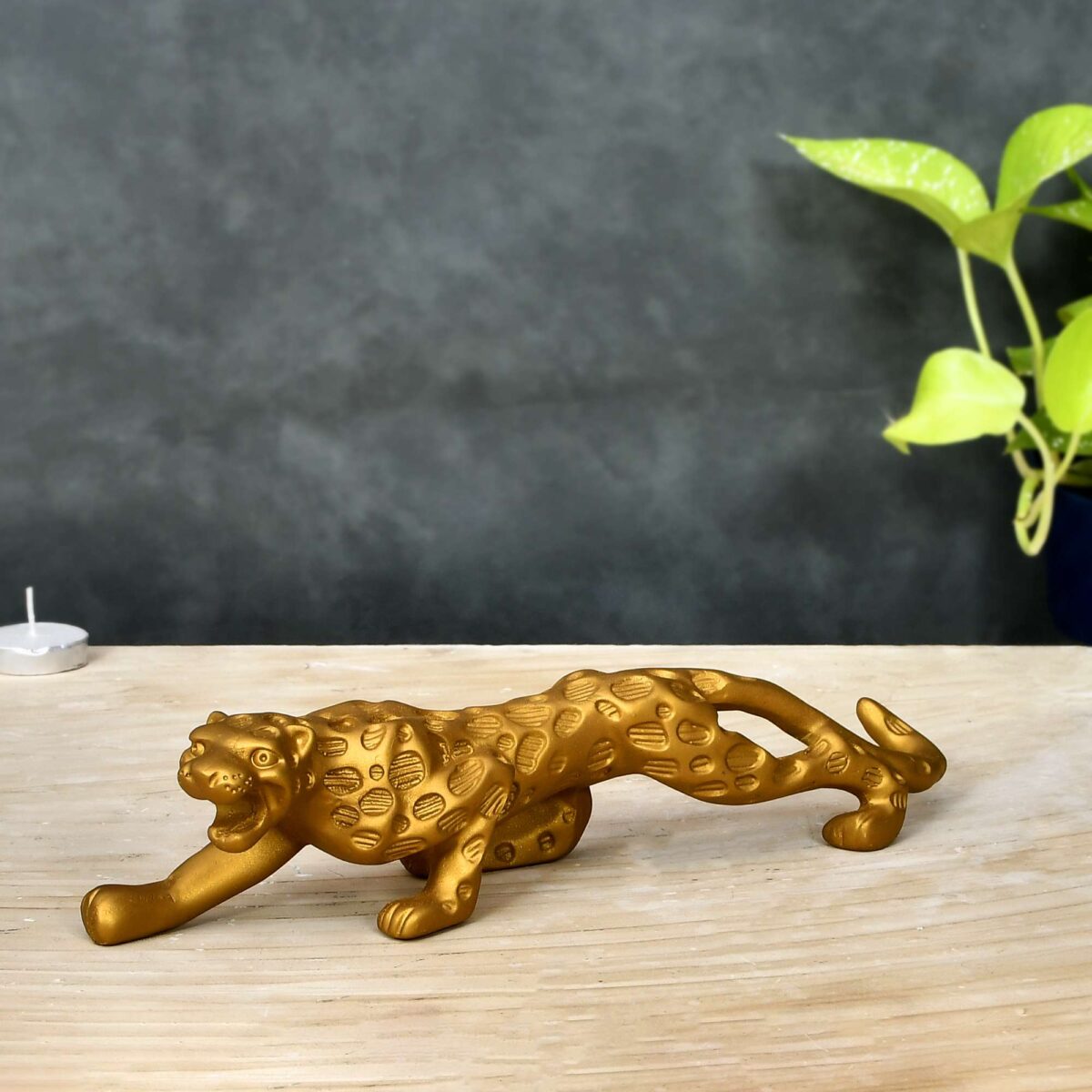 This Elegant & Precious Decorative Figures can be used as Drawing / Living Room Interior Decoration Showpieces / Table Decor Items This lovely Golden Jaguar showpiece is a great way to give a table, windowsill, table top, or blank shelf an interesting and attractive makeover A PERFECT GIFT : It is a Best Gift for Marriage Anniversary , Parents , Mothers day , Wedding Return Gift , Birthday , House warming , Office / Shop Inaugration , Festive occasions – Like Diwali ,Raksha Bandhan , Grah pravesh and Corporate Gifts A POSITIVE IMPACT :Handicrafts Designer Showpieces Placed in Drawing / Living /Bed Room , brings Health , Peace & Happiness Among The Home Members Like Mother , Father , Husband , Wife , Brother , Sister , Son , Daughter & Friend .