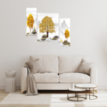 Presents This Set Of 3 Amazing Paintings For Your Wall . The Painting Will Completely Change The Atmosphere Of The Room Whire It is Placed . The Paintimg Is Made On Heavy Wooden Board And Has A Digital UV Coating On It Which MAKES It Very Easy To Clean . Pricing Of The Product Is Made Very Reasonable From Our Brand As Per The Quality We Are Providing To Our Customers, We Assure That You Will Not Regret Your Purchase, Is Well Known for Its After Sale Services And In Case If You Feel Some Problem With Any Of Our Product Than You Can Replace It For Free With No Additional Cost . This painting offers a stylish look to your wall as this piece includes three themes it is vastu and also have the essence of abstract and modern art which makes this peice unique and stylish . The 5 pieces wall painting is made with high-quality material, the HD quality print looks fantastic and bright it will not fade easily. With just few simple steps you can mount it to the wall.. Thank You For Yor Purchase