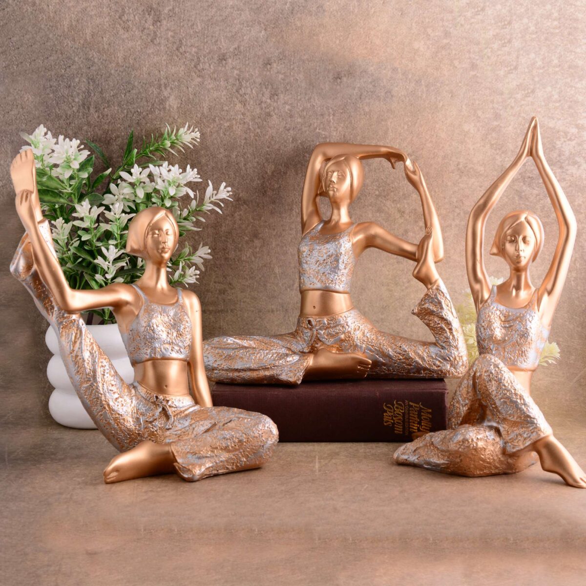 Suitable for home decor Yoga Posture Lady Statue Idol for Home Yoga Statue three pair admirable piece of gift (golden)