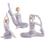 Suitable for home decor Yoga Posture Lady Statue Idol for Home Yoga Statue three pair admirable piece of gift (silver)